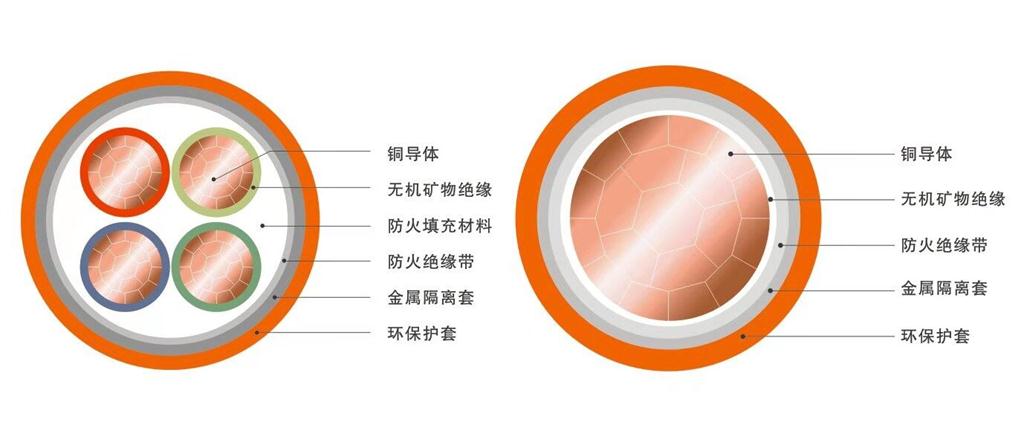 主要結構電纜導體、絕緣層、鋁護套、隔離層和外護套組成,電纜導體由多股銅線絞合而成,絕緣層采用礦物質絕緣材質,鋁護套采用鋁質軟護套,經特殊工藝加工,隔離層采用礦物質材料,外護層采用低煙無鹵阻燃或更好材質。芯數1~5,標稱截面:1~630mm2,額定電壓0.6/1KV。